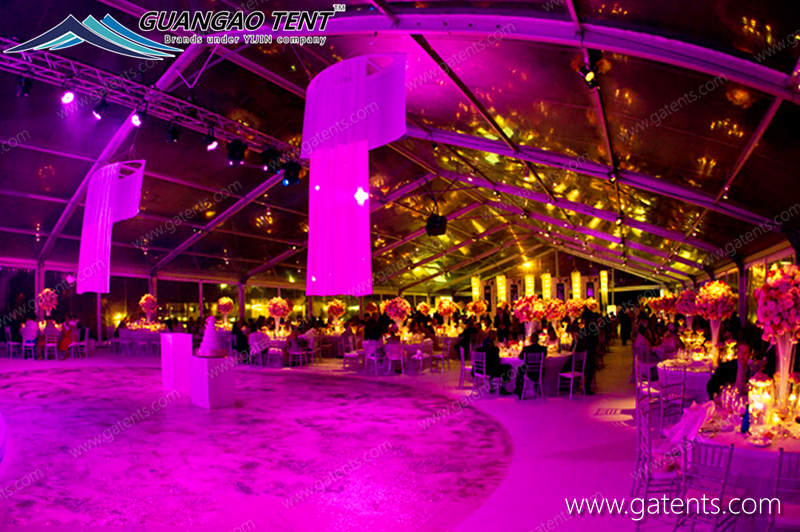 The wedding tents of Guangao tent manufacturers can be easily disassembled, can be quickly installed in a very short period of time, have a service life of more than 20 years, complete indoor facilities, stable and durable tent structure, and no restrictions on the venue.