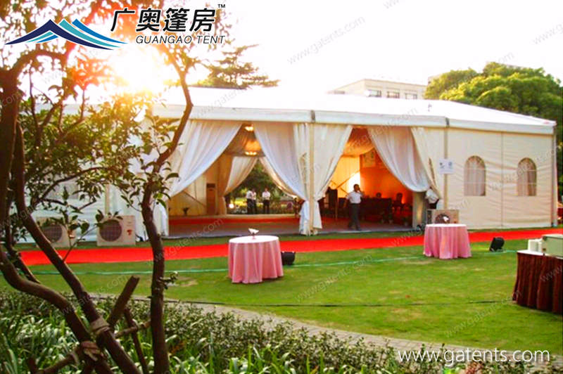 廣奧篷房廠家的婚禮篷房,完全可方便拆卸,很短的時間內可快速安裝,使用壽命長達20多年,室內配套齊全,篷房結構穩(wěn)固耐用,對場地無限制。如想了解更多婚慶篷房的主要內容,歡迎聯(lián)系在線客服。