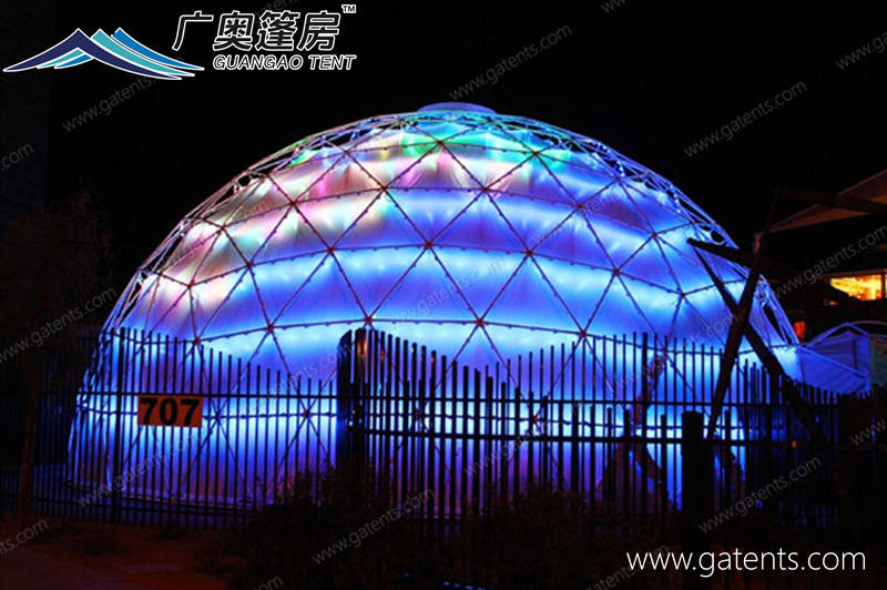 現如今流行的球形篷房尺寸為5m、8m、10m、15m、20m、25m等。